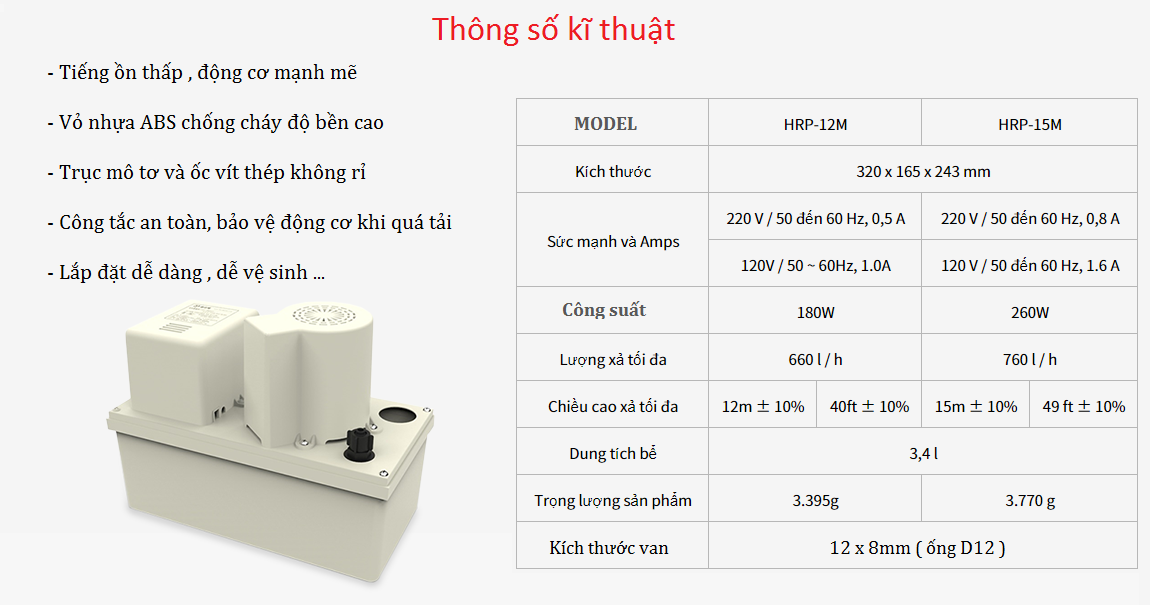 BƠM NƯỚC NGƯNG ĐIỀU HOÀ HRP 12M ( Đẩy cao 12m )